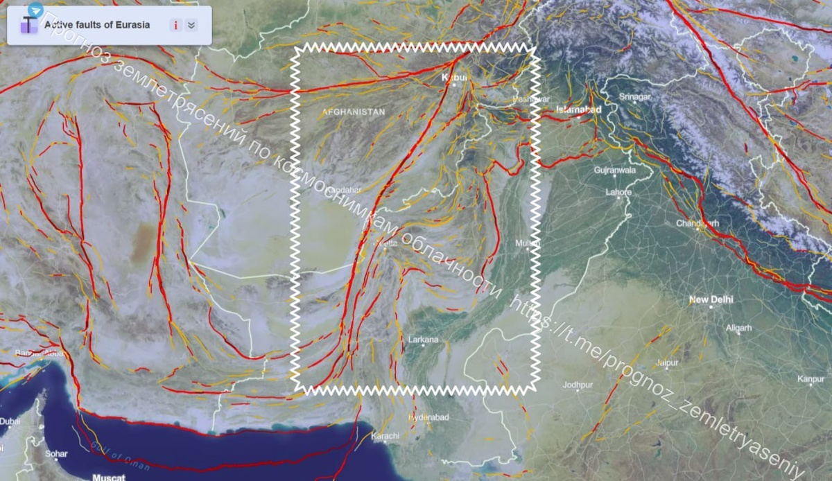 По Пакистану/Афганистану (Гиндукуш) сегодня дегазируется зона для вероятного события с магнитудой до М6.9+/-0.2