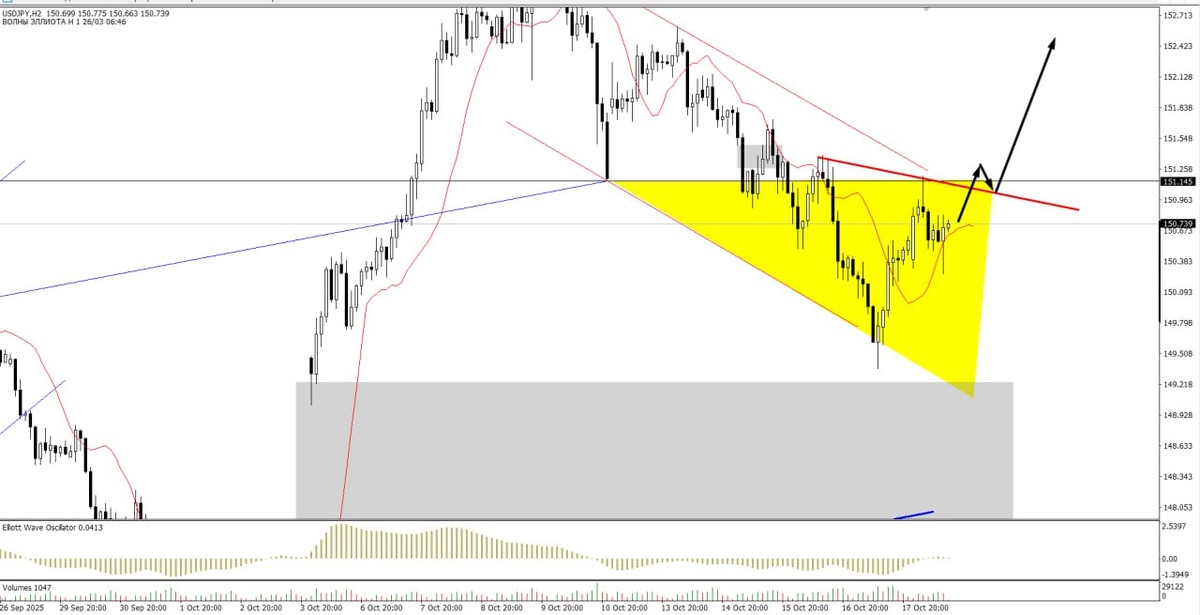 Основной тренд на Н2 сохраняется — слома не произошло. Хотелось бы увидеть формирование и отработку ПгИп как подтверждение завершения коррекции. Точка входа появляется в момент пробоя линии шеи или на обратном ходе после него. Уровни тейк-профита и стоп-лосса определяются по классическим принципам технического анализа.