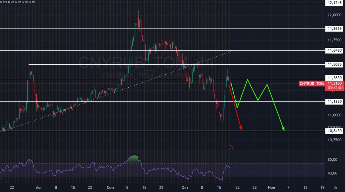 🔤 Юань-Рубль 🟢 Пока в нашем рынке всё выглядит спокойно, взглянем на валюту! Пока что ситуация спорная, есть несколько вариантов движения, которые я описывал тут. Пока что я жду рубль на укрепление, либо по зеленому варианту, с волатильной боковой проторговкой, либо по красному сценарию. На выходных некоторые инвест.дома писали, что рубль может сильно укрепиться, в случае перемирия. Если это случится, то нужно будет не проморгать этот момент и купить валюту на дне. 🚗 Пока что лучше за валютой понаблюдать с забора. После этой пятницы, уже должен быть понятен дальнейший маршрут. #юаньрубль #прогнозрубля #юань #рубльдоллар #CNY #CNYRUBF #CNYRUB #bogdanoffinvest