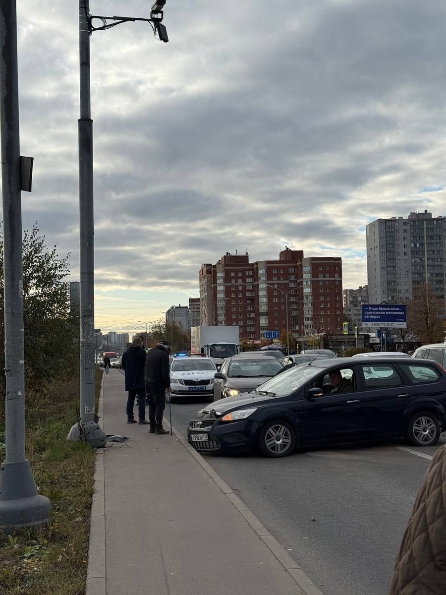 На въезде в Кудрово серьезное дтп, движение на двух полосах полностью парализовано. Анонимно
