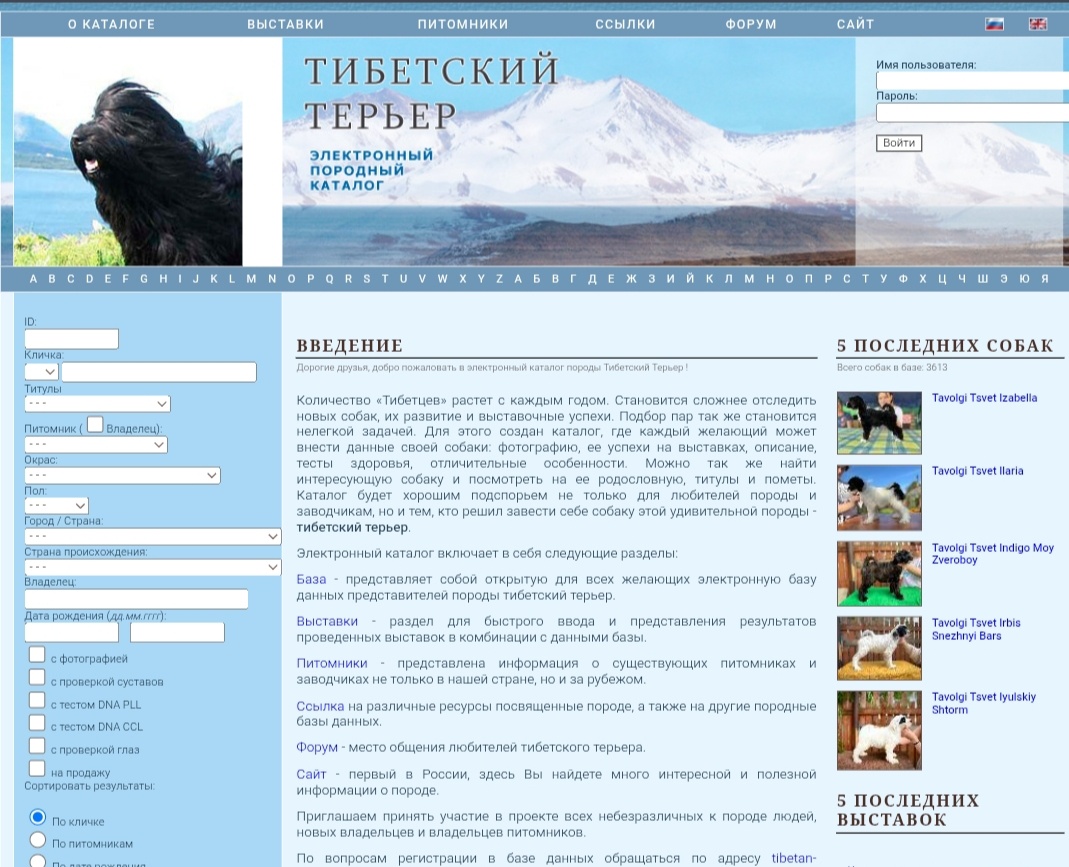 Электронный породный каталог тибетских терьеров, созданный Варварой Голдобиной, питомник "Голди Аншула", представляет собой специализированную базу данных, содержащую информацию о представителях породы тибетский терьер -