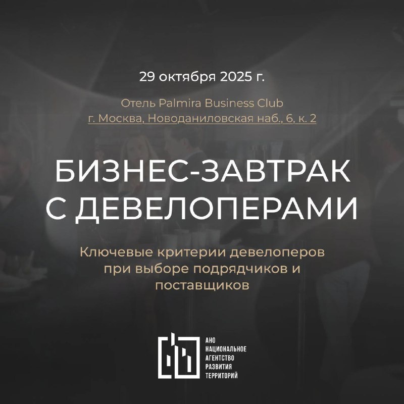 АНО «Национальное агентство развития территорий» проведёт 29 октября бизнес-завтрак, где крупнейшие девелоперы расскажут, по каким критериям выбирают подрядчиков и поставщиков.