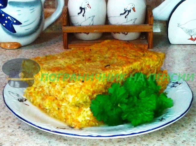 Всем доброго времени суток. Продолжаю серию публикаций: «Блюда, приготовленные моей супругой». Сегодня она готовит вегетарианскую запеканку. Ингредиенты: 1. Кабачки – 1, 5 кг; 2. Морковь – 0, 8 кг; 3. Яйцо куриное – 4 шт.; 4. Мука пшеничная – 4 ст. ложки; 5. Соль – ½ ч. ложки. Приготовление: 1. На мелкой тёрке натираем морковь. 2. С кабачками поступаем аналогично. 3. В кабачки выкладываем морковь, муку, яйца и соль. 4. Всё тщательно перемешиваем. 5. Противень застилаем пергаментом и слегка смазываем его растительным маслом. 6. На пергамент выкладываем смесь. 7. Противень отправляем в прогретую до 180°C духовку, и при этой температуре выпекаем 1 час 45 минут. 8. По истечении этого времени, противень достаем из духовки, накрываем другим противнем. Даём немного постоять. Нарезаем на кусочки и подаём к столу. Запеканку можно подавать тёплой, а можно остывшей. Эта статья опубликована каналом «Пограничник на пенсии» на площадке Паблико (https://pabliko.ru/@pogranichnik/), на других каналах
