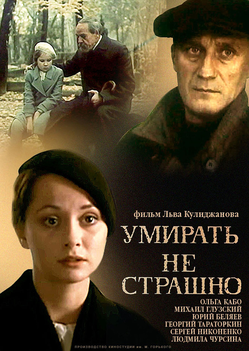 20 октября 1991 года в советских кинотеатрах состоялся премьерный показ фильма «Умирать не страшно» «Умирать не страшно» советский художественный фильм 1991 года киностудии имени М. Горького. Трагическая история семьи русских интеллигентов, репрессированной в 1935 году. В стране медленно, но верно набирает обороты маховик массовых репрессий. Ксению вызывают повесткой к следователю НКВД. Она думает, что её, как дочь бывшего помещика, ждёт арест. До этого был репрессирован её муж, однако на этот раз обошлось, следователь проникается судьбой Ксении и отпускает её. Жизнь Ксении, её двух дочерей и отца после этого идет своим чередом, но однажды её отца арестовывают, а ей самой предлагают стать осведомительницей. Несмотря на угрозы и откровенные издевательства, она отказывается и, тем самым, выносит себе приговор... Съемочная группа: Режиссер: Лев Кулиджанов Сценарий: Наталья Фокина Оператор: Сергей Онуфриев Композитор: Владимир Корчагин Художник: Александр Попов, Элеонора Маклакова, Инна Ра