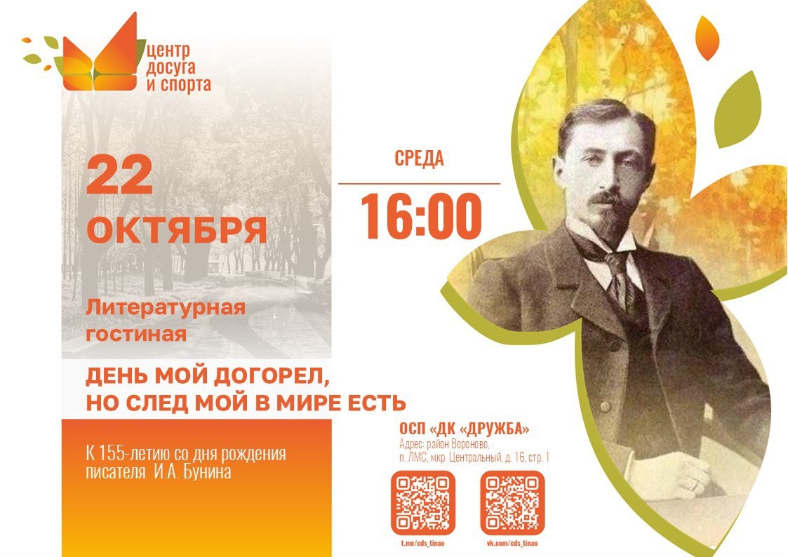📚Гости познакомятся с творческим наследием Бунина и узнают интересные факты из его жизни. Атмосфера литературной гостиной поможет прикоснуться к миру тонкой прозы.