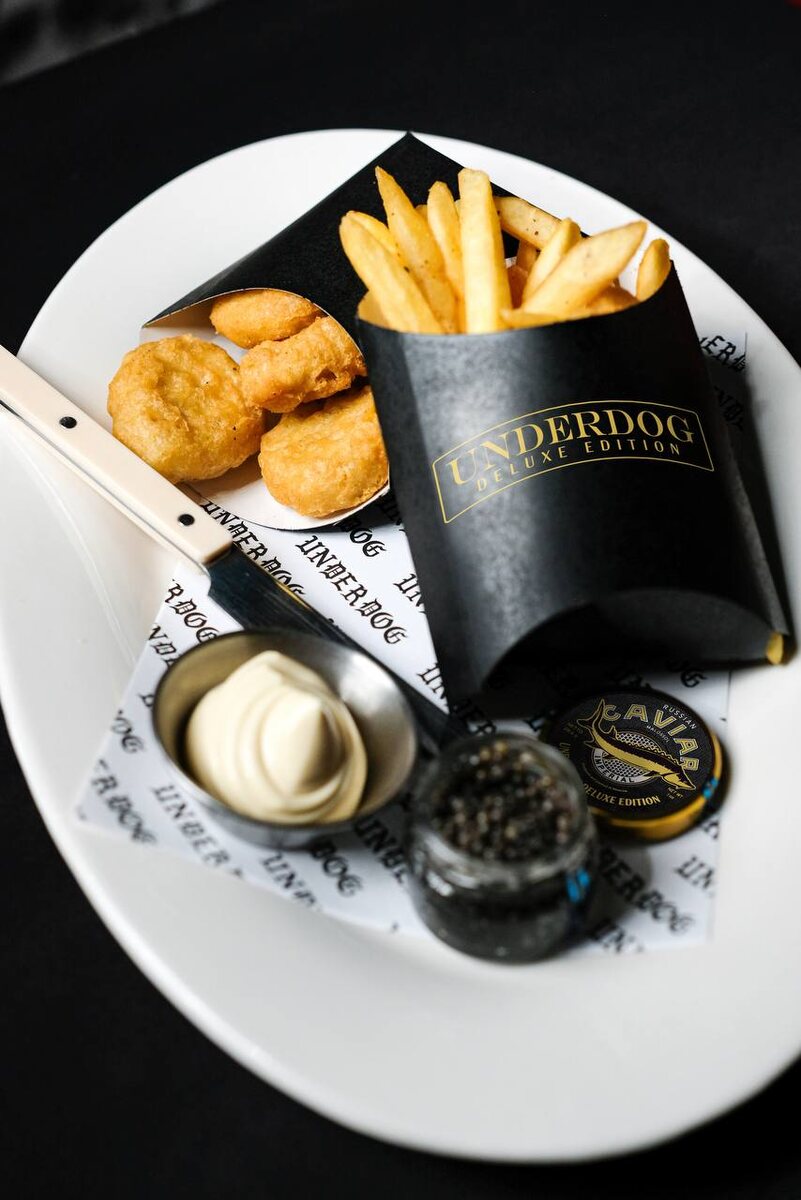 Underdog запрыгнули в уходящий (или уже давно ушедший) поезд и подают наггетсы с чёрной икрой. Black Caviar Set c трюфельным айоли, куриными наггетсами и картофелем фри. Уже в меню, предложение ограничено. 2990 руб. 🗺 Underdog Маросейка, 6-8, стр 1 +79854200228 http://underdog-moscow.ru/ 🧂 @saltmagazine
