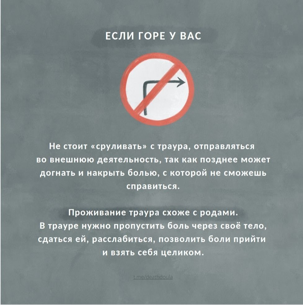 #этонепсихология 🖤 Памятка горюющей беглянке Недавно я наткнулась на канал, от которого у большинства случится тревожный зуд. А у меня — странным образом — случился покой. Канал про смерть. Про утраты. Про то, как жить, когда уже не с кем. В нём была памятка по гореванию. Простая, будто написанная на кухне между слезами и гречкой. И один пункт врезался в меня, как заноза под ноготь: «Не сруливай с траура. Потом будет хуже». А я? Всё лето я была профессиональной сруливальщицей. Александров, Тверь, Казань, Хургада, Геленджик… Где-то между сувенирами и «а может, вина?» я пыталась не чувствовать. Сейчас у меня по шесть часов учёбы в день. Практики, лекции, психика. Горевание осталось на ночь, а ночью, прости Господи, хочется спать. Но вчера на супервизии я вдруг разревелась. Не за клиента — за себя. За ту, что пряталась от слёз под расписанием и самолётами. И, пожалуй, самым правильным было то, что я убрала работу. Насколько могла. Финансы стонут, но молчат. Самым неправильным было