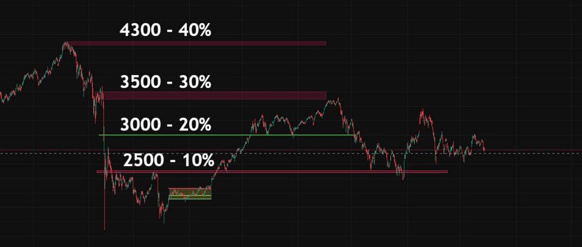 Как писал раннее, докупаю по 1 лоту #акции $SBER раз в неделю, чтобы приблизится к плановым 5% портфеля $IMOEXF летит вверх, а это значит, что я ухожу в стадию накопления и весь свободный #кэш перевожу в $LQDT Прикрепляю картинку, отображающую стратегию по кэшу в портфеле. Идея не моя, но я принял её за ориентир. Итого на индексе 2500 и больше хомячу от 10-20% кэша, если выше 3000, то уже 20-30%. в последнее ралли индекс не упал ниже 2500 и я расчехлил кэш всего до 3-4% Из сожалений только пропущенный $YDEX за 3700+ … а так закупился неплохо Даже #тейк не зря ставил по $CHMF и $TATN - стрельнули) #прояви_себя_в_пульсе #новичок_в_пульсе