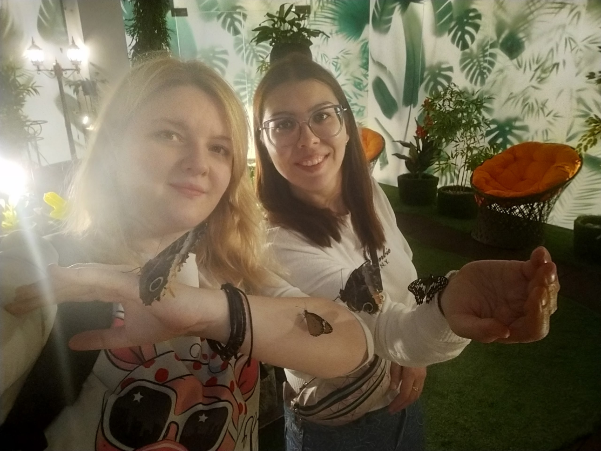 У нас снова были насыщенные выходные, которые начались с похода с сестрой и племяшкой. Племяшка сейчас в таком возрасте, когда ей интересно, и в театре сидеть, и на кораблике кататься, и поросят гладить. А тут у нас появилась возможность посмотреть на самых настоящих живых и красивых бабочек. Погода сейчас у нас не очень летняя, но в Моей бабочке | Парке бабочек в ТРК MARi – настоящие тропики. Здесь – лианы, фонтанчики, атмосферные статуэтки, гамаки и много-много прекрасных существ. Они не сидят за стеклом, а свободно летают повсюду: пролетают прямо перед носом, садятся на волосы, на плечо, на вытянутую руку, их можно покормить апельсинкой. Племяшка сначала немного испугалась, потом освоилась и ходила по залу с криками: «бабочка, бабочка». Одна даже приземлилась ей на голову и долго знакомилась. Отдельно хочется поблагодарить персонал – нас любезно встретили, все показали и объяснили. Постоянно приносили новые виды бабочек. Один огромный мотылек Атлас чего только стоил! У него размах