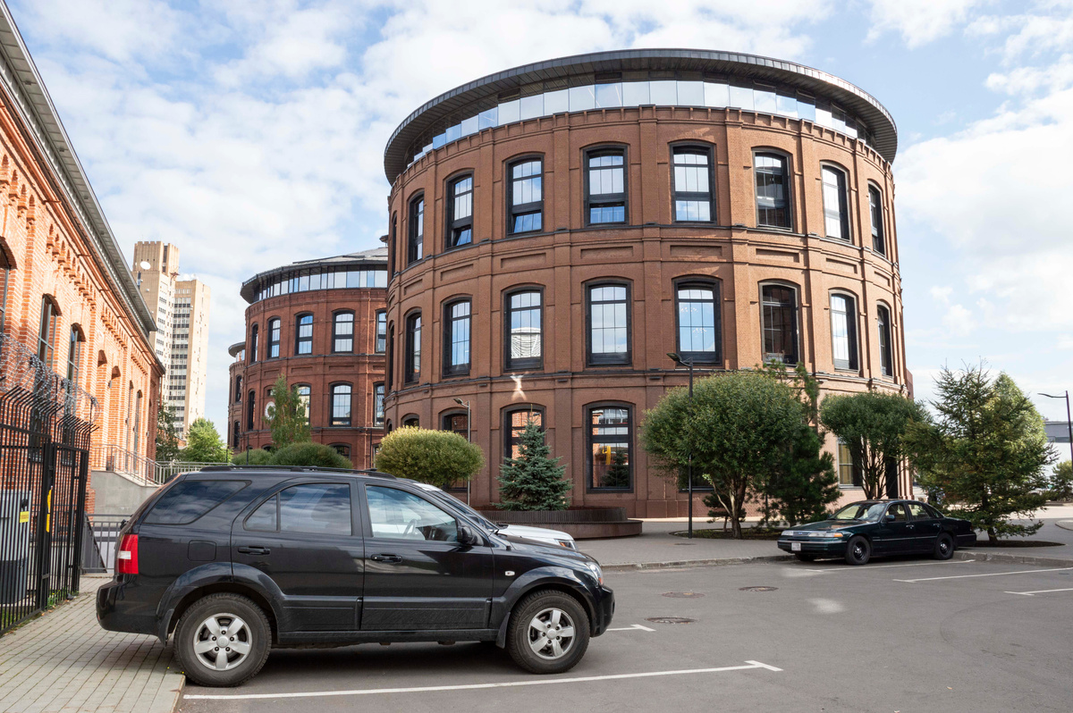 Началось наше путешествие от метро "Курская". Сначала полюбовались старыми газгольдерами. Сейчас в них офисные помещения. А раньше это были места накопления и хранения газа.
