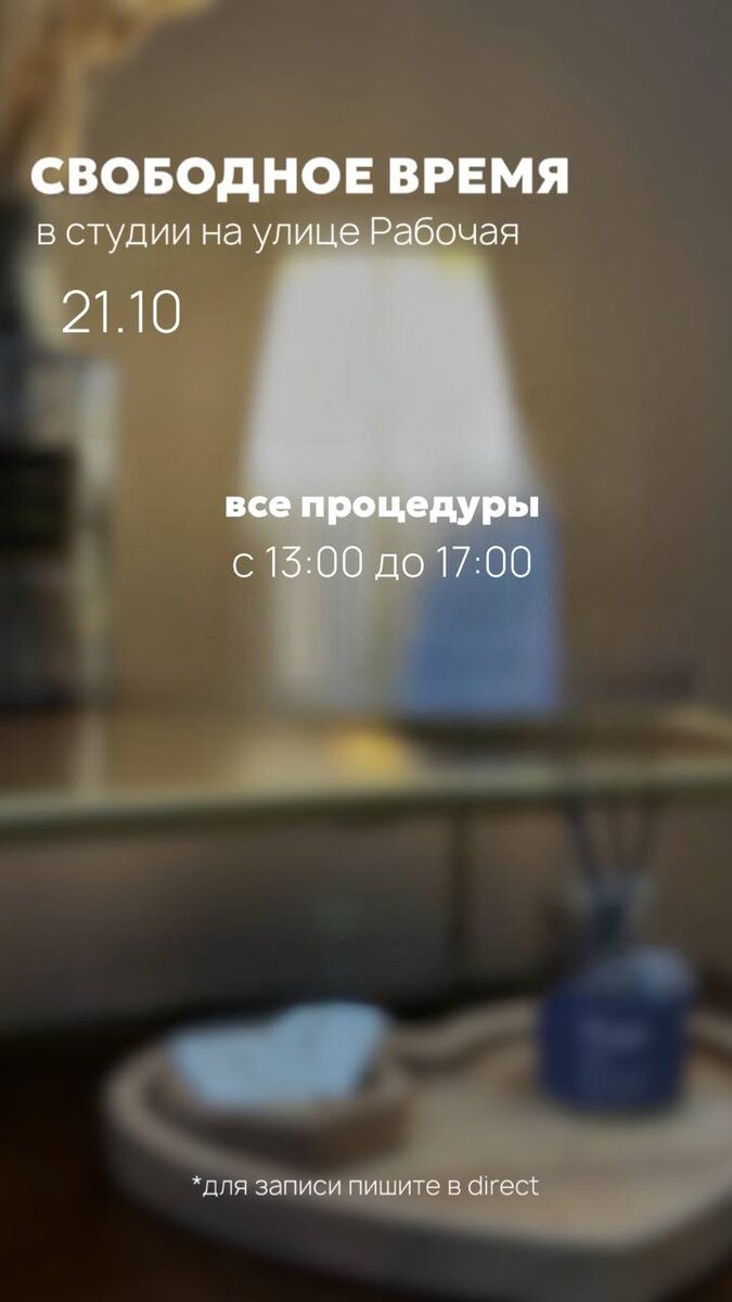 СВОБОДНОЕ ВРЕМЯ НА РАБОЧЕЙ 21.10 • ONLINE запись • WHATSAPP Ждём вас к нам на процедуры 🤍