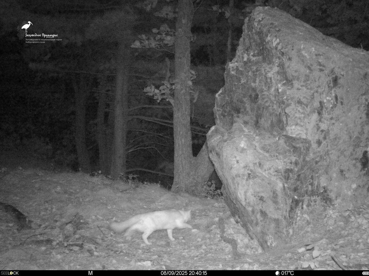 В Большехехцирском заповеднике в Хабаровском крае фотоловушка сняла домашнего кота, пришедшего к меточной скале диких животных