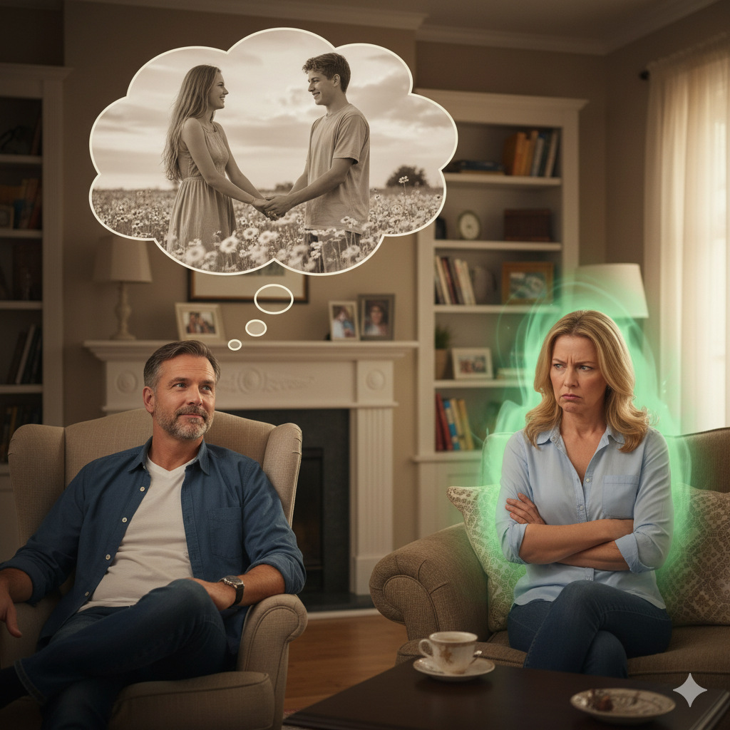 Эта женщина — не просто бывшая. Она — воплощение дороги не пройденной, решения не принятого, жизни не прожитой. Она никогда не оставляла носков в ванной, не спорила из-за финансов и не закатывала истерик в три часа ночи. В его памяти она осталась застывшим идеалом — прекрасной и недостижимой, как горная вершина в утренней дымке.