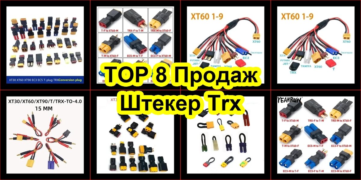 Я – Андрей, 38 лет, по профессии инженер-электронщик, но моё главное хобби — радиоуправляемые модели: самолёты, квадрокоптеры и машинки. Постоянно ковыряюсь в аккумуляторах, меняю провода, собираю зарядные станции «под себя». И вот недавно я решил обновить свой арсенал переходников и разъёмов. Вбил в поиск «штекер trx» и выбрал несколько товаров из ТОПа продаж на AliExpress. Получилось аж восемь позиций! Решил написать этот подробный обзор, потому что сам всегда ищу реальные штекер trx отзывы перед покупкой, а тут — целая подборка.