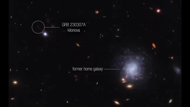 Иногда самые яркие космические катаклизмы скрывают самые интересные загадки. Именно это произошло с гамма-всплеском, который заставил астрономов вглядеться в данные пристальнее. Март 2023 года. Спутники фиксируют GRB 230307A – ослепительную вспышку, затмившую на мгновение целые галактики. Этот гамма-всплеск занял второе место в истории по яркости. Источник – столкновение двух нейтронных звезд где-то на просторах Вселенной. Но была одна странность: взрыв длился целых 60 секунд, хотя обычно такие катаклизмы длятся считанные мгновения. Что скрывалось за этой аномалией? Ученые из Китая и США провели детективную работу, проанализировав горы данных – более 600 000 наборов показаний с разных спутников. И нашли нечто необычное: четкий повторяющийся сигнал, будто чье-то космическое сердце билось с частотой 909 ударов в секунду. Это "сердцебиение" принадлежало новорожденному магнетару – сверхплотной звезде, рожденной в результате звездного столкновения. Представьте: звезда, вращающаяся почти тыс