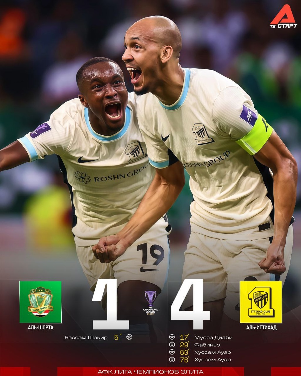 ✅👏 Первая победа Консейсау с «Аль-Иттихадом»! И первая для клуба в нынешнем розыгрыше АФК Лига Чемпионов Элита. Со счетом 4:1 повержена «Аль-Шорта». Реализация моментов у чемпионов Аравии на потрясающем уровне. В параллельной игре «Трактор» разгромил «Аль-Шаржу» со счётом 5:0. Футбольный вечер завершит матч «Аль-Ахли» (Джидда) – «Аль-Гарафа» на телеканале «Старт» и платформе TVSTART.RU. У микрофона Григорий Твалтвадзе 🎙 🛒 Наше приложение в Google Play 💙 Наше приложение в RuStore 🛒 Наше приложение в App Store
