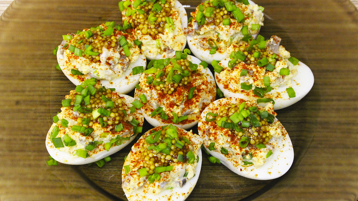 Ваши великолепные фаршированные яйца "Морской деликатес" готовы к подаче!