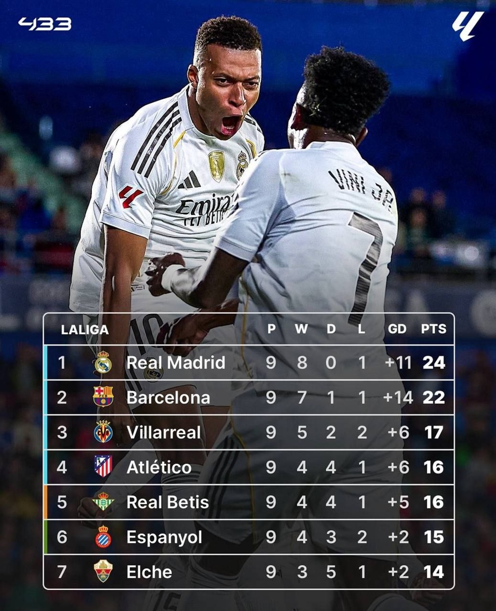 🔝Лидеры в турнирных таблицах топ-5 лиг Европы