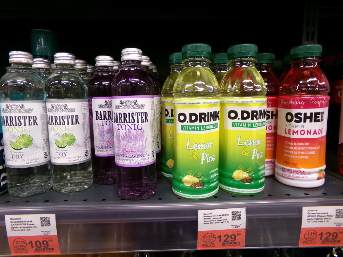 Периодически в сети попадаются разные инициативы о защите русского языка и о том, чтобы надписи были на русском языке, даже принимались какие-то законы. И вот захожу в любой сетевой магазин и что вижу, половина, а то и более товаров с иностранными надписями на лицевой стороне, причем немало, где на лицевой только латиницей написано. Подумаешь было импорт, потом посмотришь на цену, для импорта дешево, и посмотришь на заднюю часть упаковки, а там уже на русском... и отечественный производитель. Сегодня будет пример на напитках, а так можно и другие продукты привести как образцы. Но в этот раз сфотографировал именно напитки. Вот лицевая сторона, найдите хоть одно слово на родном русском языке. Я где нахожусь: в России или англоязычной стране? Разворачиваю бутылку. А тут уже на русском и состав и производитель. Производители так стесняются родного русского языка или надеются, что их товар ошибочно примут за импорт, купят не глядя, что написано на обороте. А тогда где же гордость за отечест