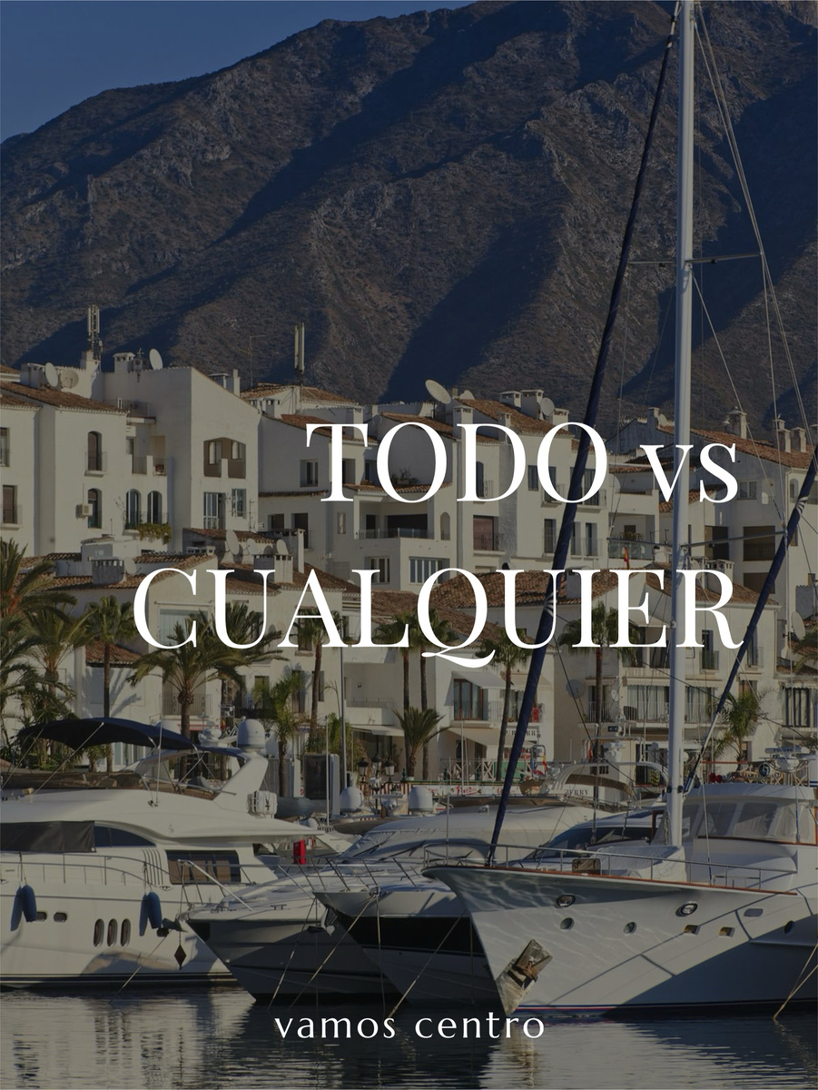 Давайте разберемся, в чём именно состоит разница и как правильно их использовать в разных контекстах📚 1. Todo (всё, весь, вся, все) Todo используется, когда вы хотите обозначить целое, всё, без исключений. Это слово указывает на полноту, завершённость или на что-то, что охватывает всё в своей категории. Пример: Todo el día — Весь день Todo el mundo — Весь мир, все люди Todo está bien — Всё в порядке Lo quiero todo — Я хочу всё 2. Cualquier (любой) Cualquier используется для обозначения какого-то элемента из множества возможных, без уточнения какого именно. Это слово указывает на что-то неопределённое, выбранное без каких-либо предпочтений. Пример: Cualquier día — Любой день Cualquier persona — Любой человек Puedes comer cualquier cosa — Ты можешь съесть что угодно Elige cualquier libro — Выбери любую книгу В заключение, todo выражает целое, завершённое, всё без исключений, а cualquier — это что-то неопределённое, любое из множества возможных вариантов.