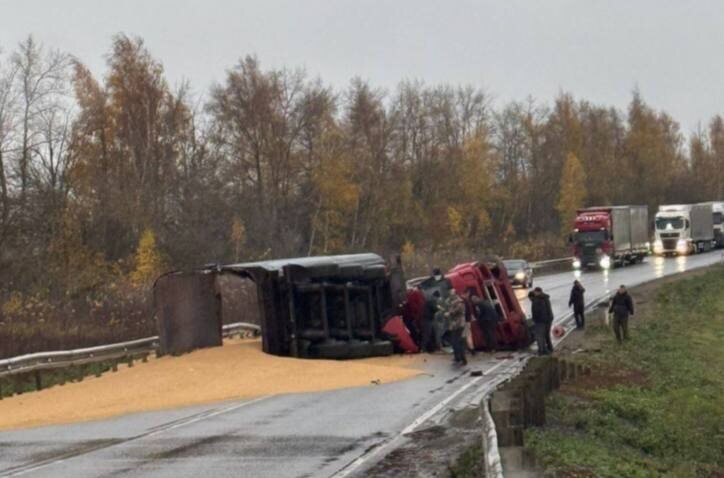 В ответ на пост ❗️Погиб водитель фуры с песком, опрокинувшейся на трассе М-4 По информации региональной Госавтоинспекции, ДТП произошло на 302-м километре трассы М-4 «Дон». За рулем «Камаза» с полуприцепом находился 39-летний мужчина. Предварительно, он не справился с управлением, после чего большегруз врезался в отбойник и перевернулся. Водитель скончался на месте от полученных ранений.