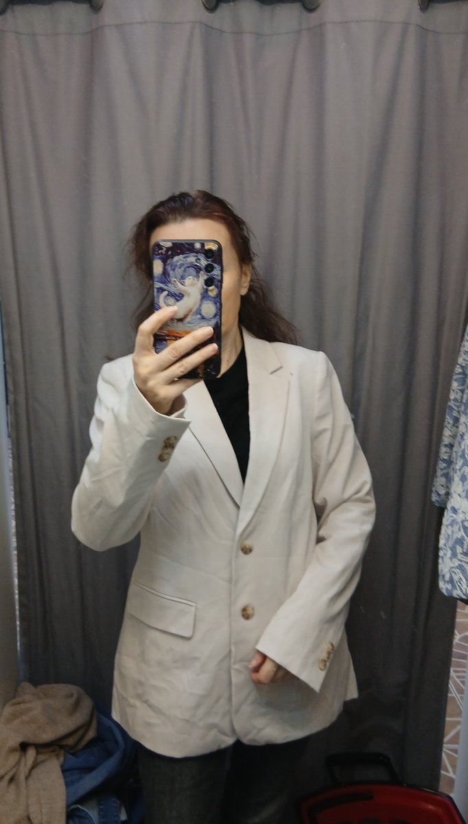 Здравствуйте, сегодня обзор с акции "всё по 150 рублей". Я себе ничего не купила, мне показалось, что платьишко из вискозы, что я присмотрела для дома, за такие деньги - перебор. А впереди акция "всё по 50 рублей", моя вещь меня дождется. Так что взяла я только пару мужских джинс, по 150 рублей это чрезвычайно выгодно. Народа было человек пять, никто на такую цену и уже не богатый ассортимент не польстился. Белый немного приталенный жакет из вискозы и синтетики. Неплохой, но мне заметно велик, а белый я на лето взяла бы. Жакет без застежки. Кажется, что это белое кружево, на голубом фоне, но это просто рисунок. Синтетика. Приталенный жакет, серый в тонкую полоску. Понравился широкий кант по воротнику. Вискоза и синтетика. Платье с застёжкой во всю длину, с кулиской и поясом. На плечах крупные жемчужины, они не пришиты, а держатся на заклепках. Вискоза. Приталенное платье с жабо. Ткань тонкая, но не просвечивает. Состава нет, похоже на синтетику, но могу ошибиться. Бельгийский бренд
