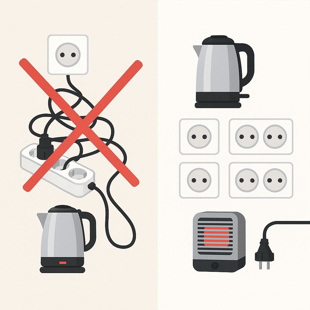 4️⃣ Лучше добавить розетки от щита, чем греть удлинители.