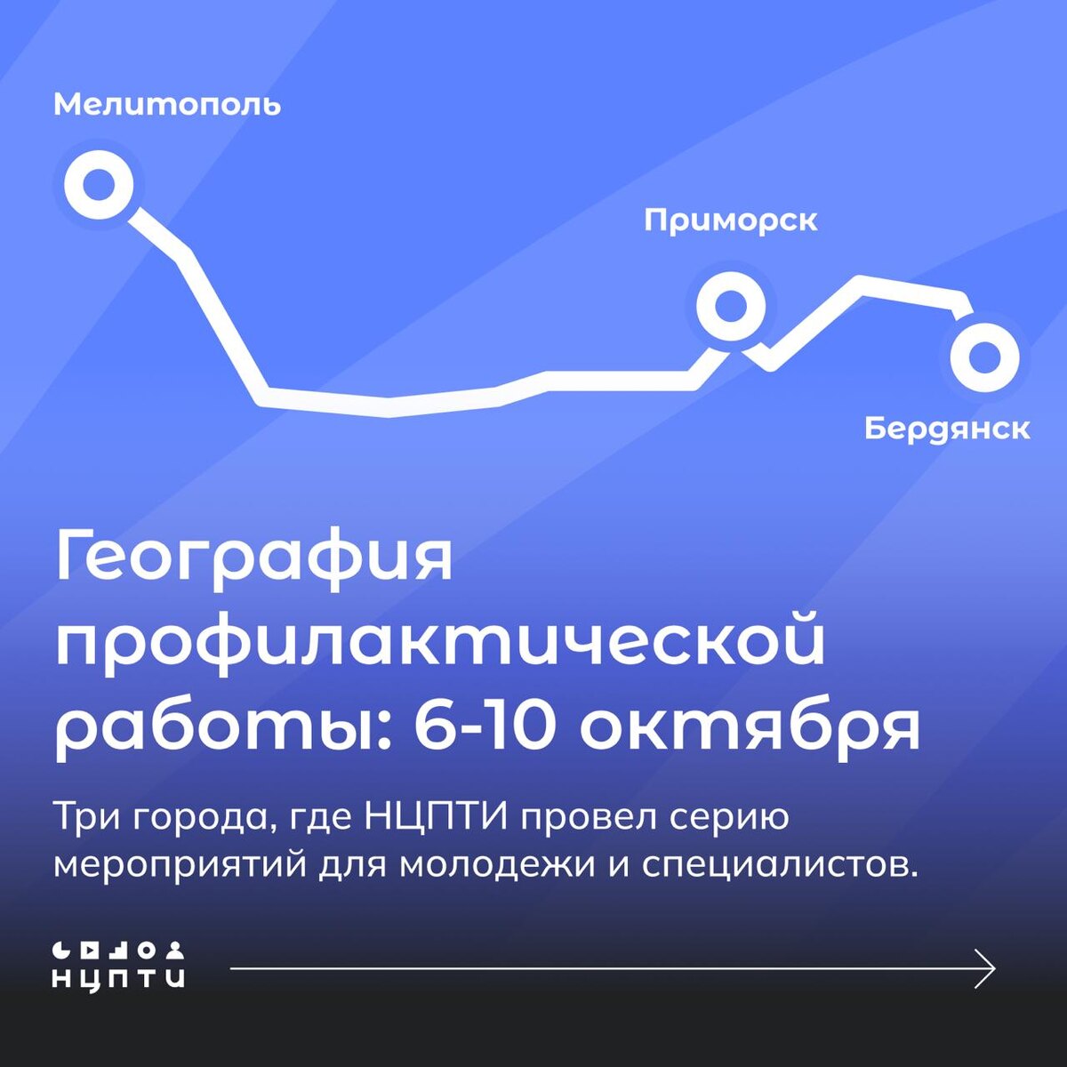 5 дней работы — 1000 участников: итоги поездки специалистов НЦПТИ в Запорожскую область Команда НЦПТИ на 5 дней отправилась в Запорожскую область, чтобы провести более 20 мероприятий для тысячи человек. Подробнее о выезде в карточках —> 🌐 НЦПТИ | 📲 Мы в МАХ | #нцпти_события