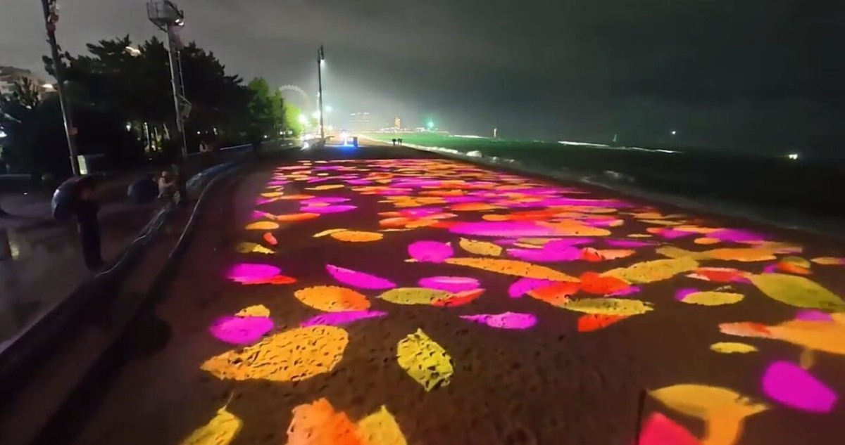 Посетители стекаются на пляж Сокчхо в Южной Корее, чтобы окунуться в цифровые волны на выставке медиаарта «Море света» (Sea of Light). На кадрах люди рассматривают на побережье мультимедийные инсталляции в виде причудливых узоров, морских обитателей и растений. Общая площадь проекции — 70 метров в ширину и 15 метров в длину. Экспозиция сопровождается музыкой и разделена на две зоны: первая позволяет оценить масштаб с высоты, вторая приглашает гостей спуститься на сам пляж, чтобы сделать уникальные фотографии. «Я не ожидала здесь такого увидеть, это просто потрясающе. Такое чувство, что люди всех возрастов погружаются в волшебный мир», — поделилась девушка. Другая гостья отметила, что выставка стала отличным вариантом вечернего досуга. «Была очень приятная музыка, и сами инсталляции на пляже были действительно интересными. Вечером на пляже не так много развлечений, особенно в дождливый день, поэтому я думаю, что это хорошая идея — показать людям что-то подобное», — добавила посетительн