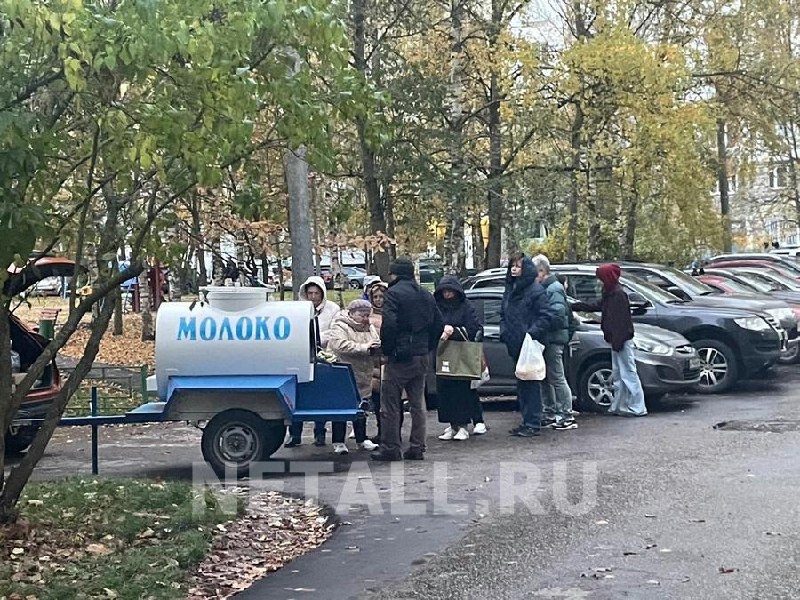 Фотофакт: в субботу, 18 октября, зеленоградцы выстроились в очередь за разливным молоком у корпуса 1539 Фото: netall.ru подписаться / обсудить в чате