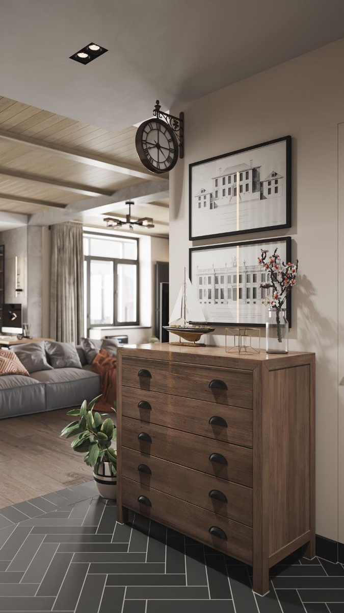 Дизайн в мелочах. Еще одним элементом дизайна, который появился в нашем интерьере, это уличные часы, добавляющие настроение входной группе. Проект - #АЧ_ЛОФТ_эволюция
