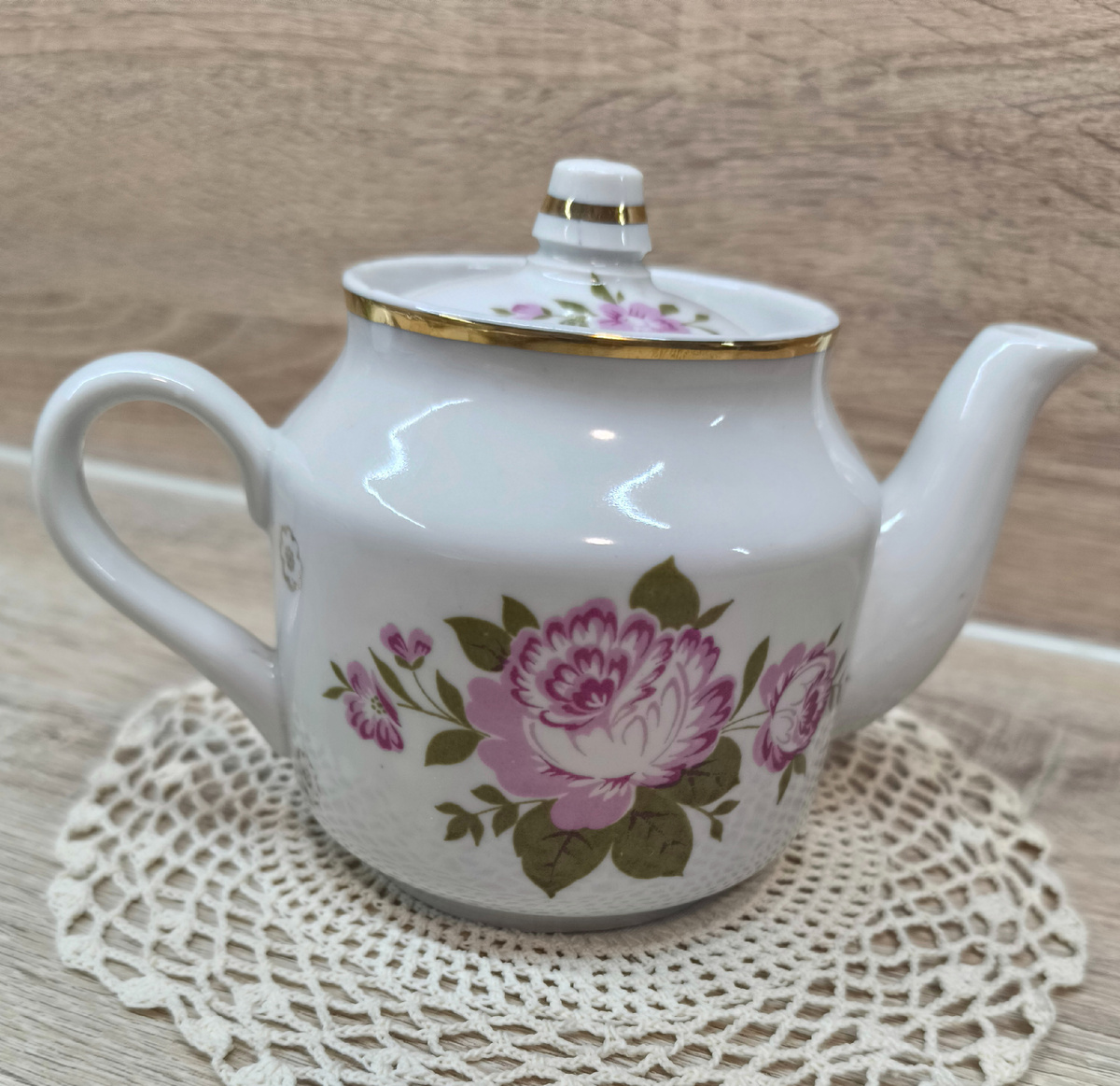 Предлагаю Вашему вниманию небольшой чайный сервиз - чайник, сахарница и четыре чайные пара. Чайник украшенный по бокам красивыми розовыми розами с золотой обводкой по контуру. Сахарница с также с расписными боками, но более приземистая. Крышечки с рисунком чуть-чуть по проще. Чайные пары также с розами, смотрятся нарядно. Блюдца также с подобным рисунком. Производство Дмитровского фарфорового завода, клеймо с "головой лося". Удобный чайник для заваривания чая. Удобные кружки, но мне больше понравилась сахарница. Не броская красота сервиза завораживает и располагает к чаепитию. Вечером появились на проге дома гости - внуки и их родители, поздравить дедушку. Оказывается, сегодня День отца — праздник, посвящённый роли отца в укреплении семьи и воспитании детей. В России его отмечают в третье воскресенье октября. Принесли с собой вкусняшки и как же без чаепития. Тут конечно нам пригодился чайный сервиз. Было очень вкусно и весело, отметили новый праздник! Главное внуки были довол