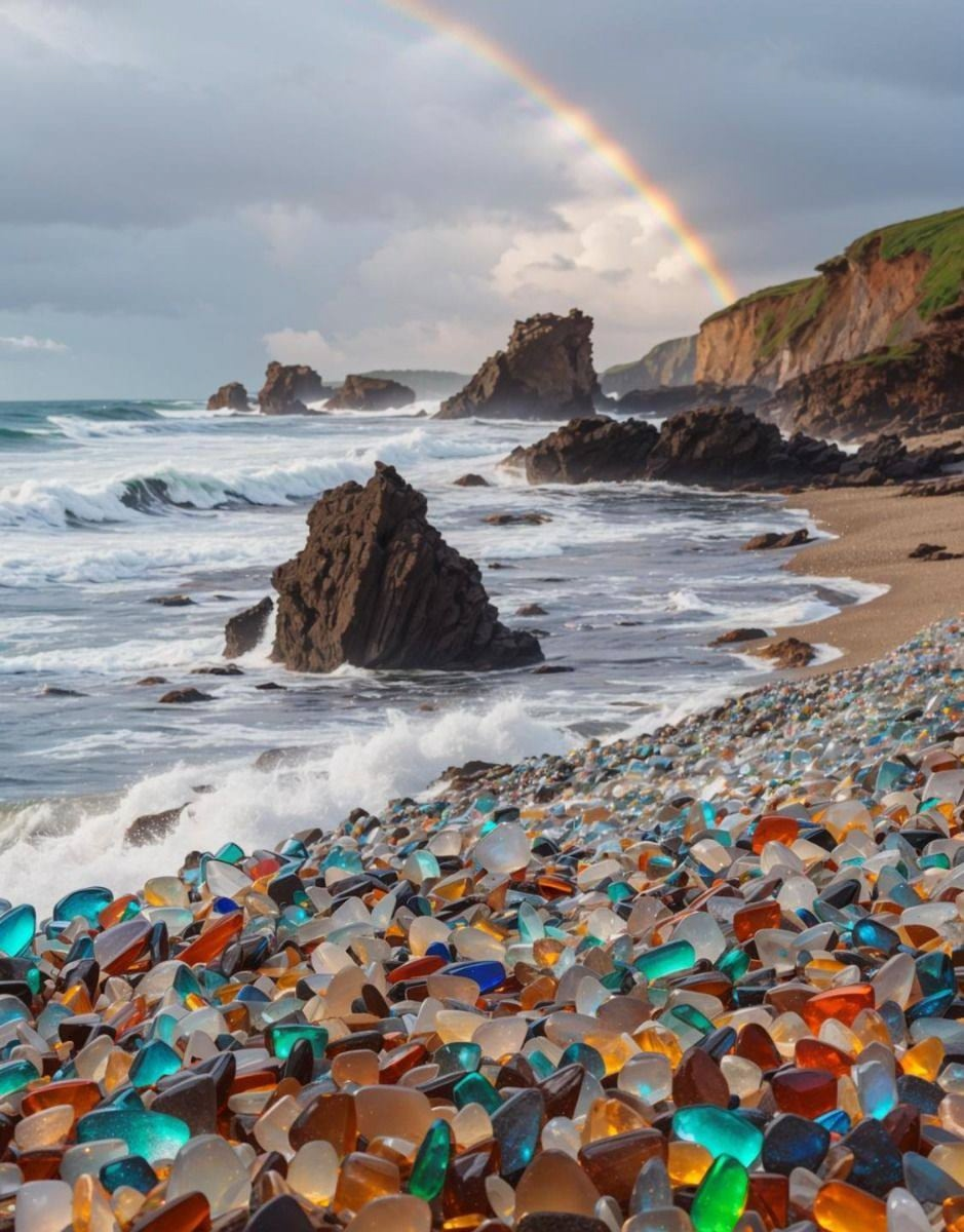 И, действительно, у Омуры есть небольшой пляж, полностью усеянный разноцветным стеклом. Народная молва приписывает ему такую историю: