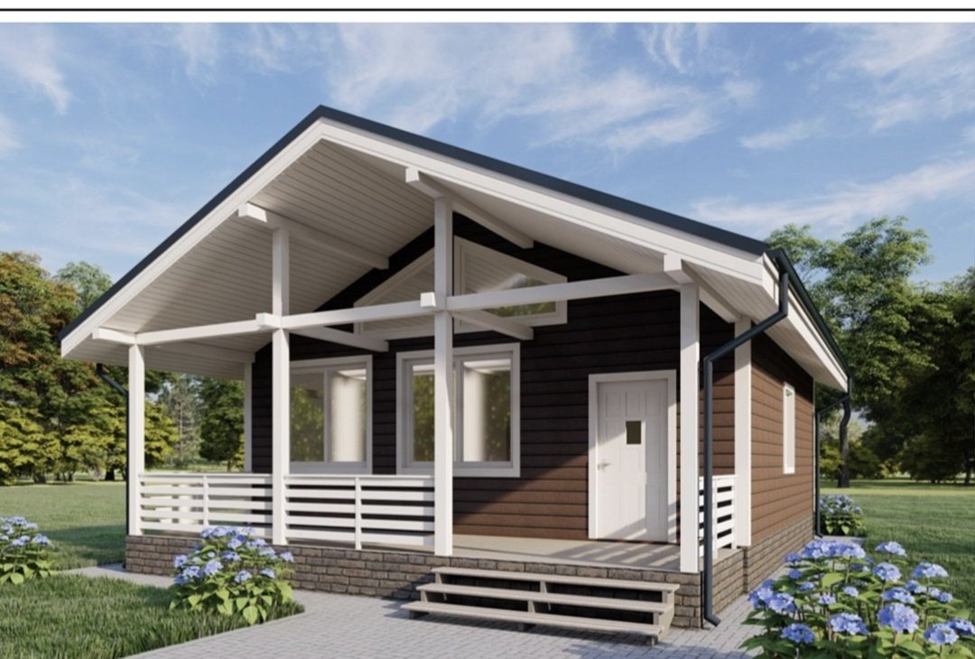 Друзья, вы можете заказать готовый одноэтажный дом из СИП-панелей 8×10,5 м с уютной террасой — по очень выгодной цене!