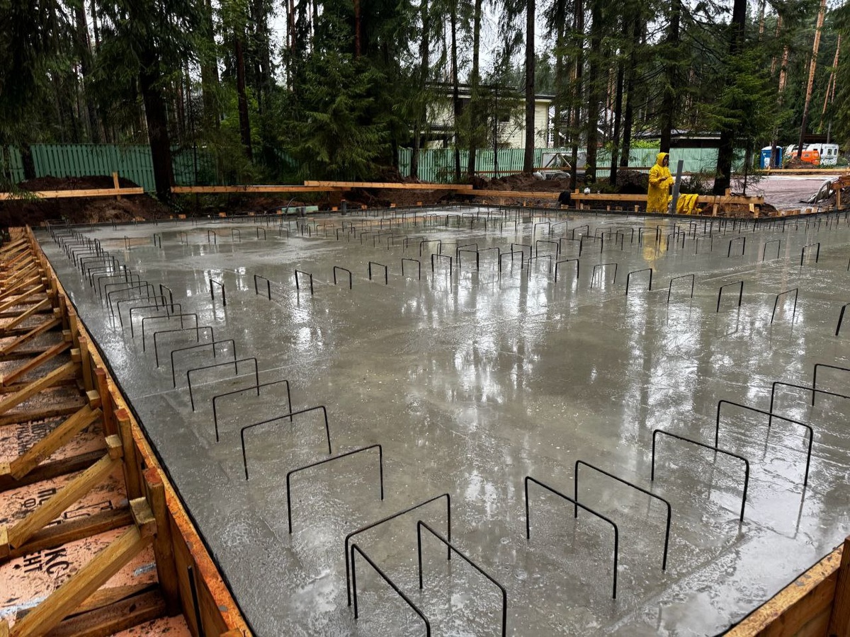 Не просто залили и накрыли. Зачем нужен уход за бетоном? Многие думают, что после заливки бетона главная работа закончена. На самом деле, один из самых ответственных этапов только начинается — этап набора прочности. На наших фото вы видите, что мы завершили бетонирование и укрыли объект полиэтиленовой пленкой. Расскажем, зачем это нужно с технической точки зрения: ✅ Задачи защитной пленки: 1. Предотвращение потери влаги. Ветер и солнце вызывают быстрое испарение воды с поверхности. Без этой влаги реакция гидратации останавливается, что приводит к недостаточной прочности и образованию усадочных трещин. 2. Защита от размывания. Атмосферные осадки вымывают цементное молоко из верхнего слоя, ослабляя и разрушая поверхность. 3. Выравнивание температуры. Создает своеобразный «парниковый эффект», благоприятный для равномерного твердения. Мы строго следим за технологией, потому что на кону — долговечность и надежность. Теперь даем бетону время набрать силу.