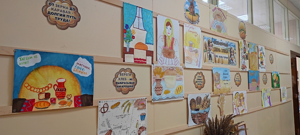 А юные художники, организовали и представили на школьной выставке свои удивительные рисунки, изображающие этапы выращивания хлебных колосьев, процесс выпечки хлеба и его значение в повседневной жизни наших предков. Учащиеся младших классов участвовали в конкурсе на лучшее исполнение стихотворений и рассказов о хлебе.