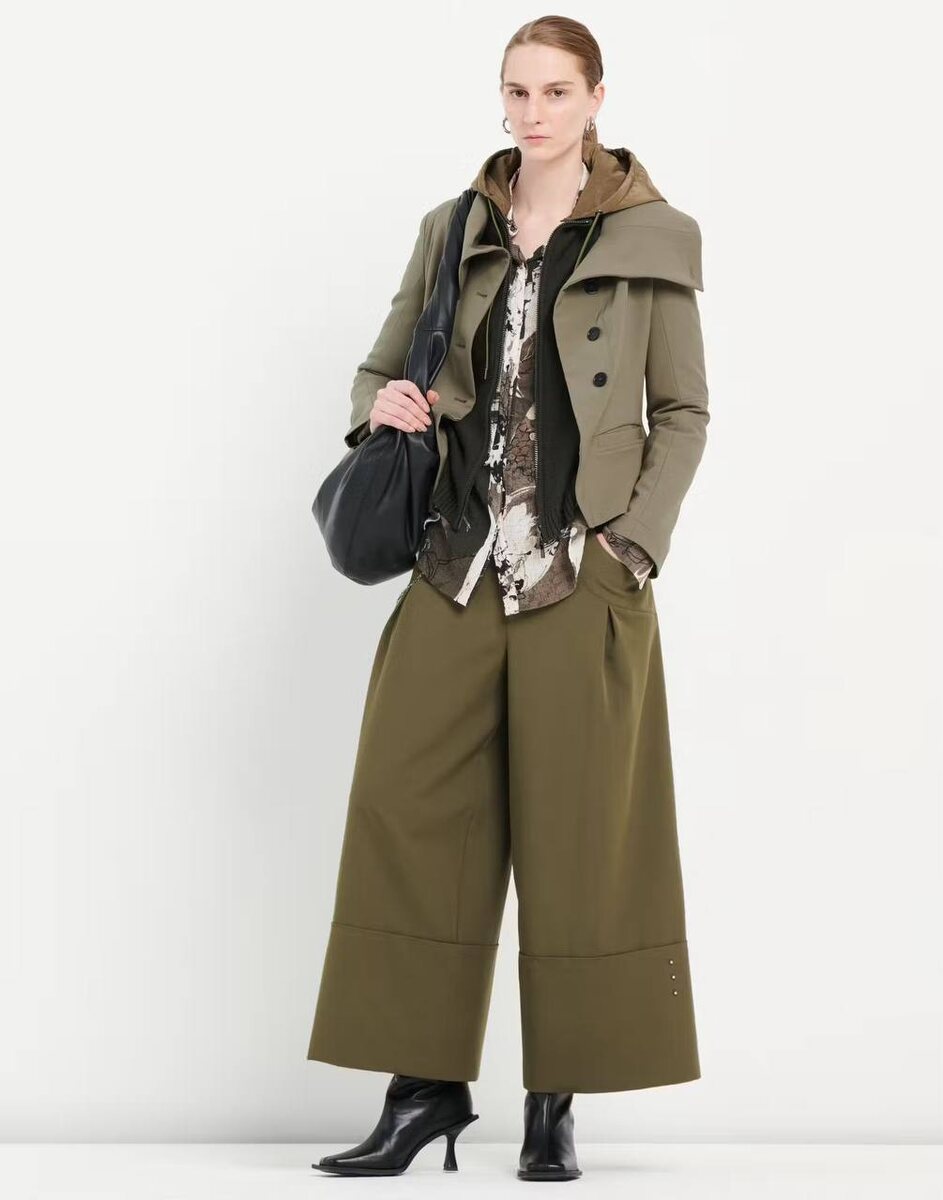 Элегантность с дерзким акцентом от HIGH💫 Брюки из новой коллекции стирают границы между формальной одеждой и уличным стилем, предлагая изысканную небрежность. Широкий, укороченный силуэт плавно переходит в массивную манжету. Эластичный пояс, металлическая фурнитура и цепочка придают образу необходимую остроту. 📍Ждём вас в ТРЦ Европейский, 2 этаж.