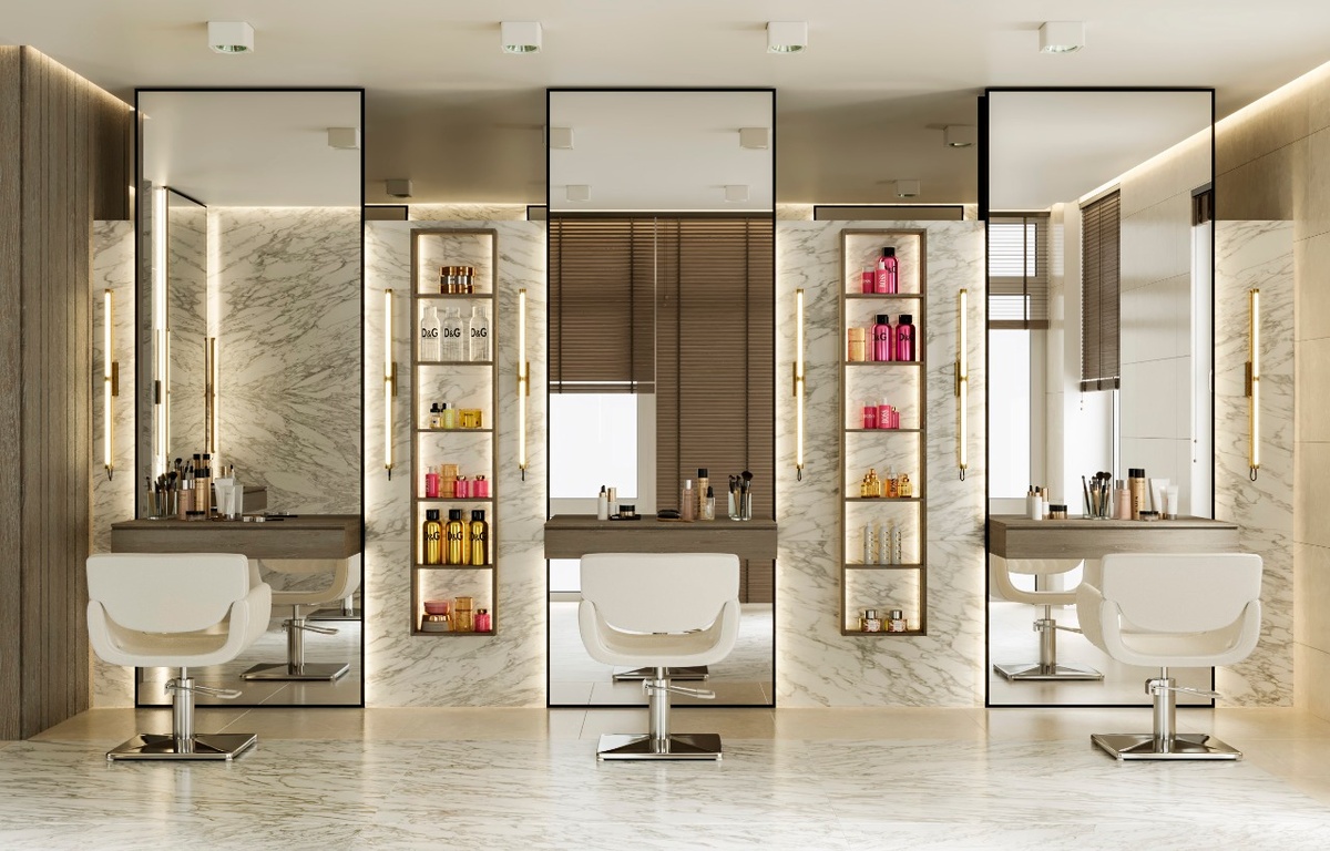 Парикмахерская Luciano — часть большого комплекса, где каждый элемент пространства подчинён единой эстетике. Главная задача заключалась в том, чтобы сохранить фирменный стиль комплекса — сочетание дерева, камня и золота, — при этом не перегрузить интерьер и сохранить ощущение лёгкости. В интерьере мы использовали благородные натуральные материалы: дерево и камень формируют ощущение стабильности и уюта, а акценты из золота добавляют тепла и премиальности. Важно было соблюсти тонкую грань между выразительностью и функциональностью — пространство должно быть визуально спокойным и комфортным как для мастеров, так и для гостей. Ключевым элементом проекта стало планировочное решение, продуманное до мелочей. Пространство организовано так, чтобы мастерам было удобно перемещаться, а всё необходимое оборудование находилось под рукой.