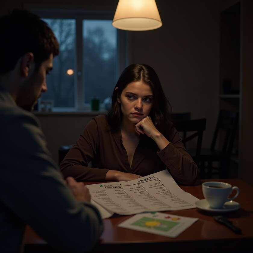 Вечером он вернулся домой в приподнятом настроении. Войдя в прихожую, он ожидал увидеть сияющий порядок и аромат пирога. Вместо этого его встретил тот же хаос, что и утром, и я, сидящая за столом с распечатанной бумагой в руках.