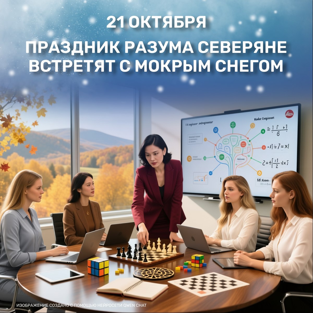 🧠🌨 В Мурманской области 21 октября, в праздник разума и День деловых женщин, облачная с прояснениями погода