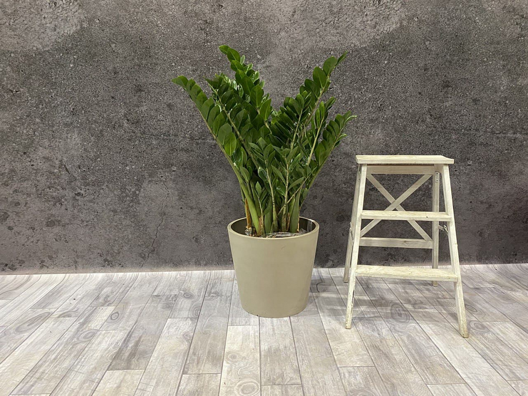 Замиокулькас, он же «Долларовое дерево», — это образец выдержки и современного дизайна. Это не просто цветок, а скульптура. Его мощные, глянцевые листья сложной формы растут прямо из подземных клубней-водохранилищ. Каждый лист — это целая ветвь с идеально симметричными кожистыми листочками. Он не растет быстро, но каждая новая ветвь — это событие, которое приносит удовлетворение. Философия ухода: меньше — лучше. Интересный факт: