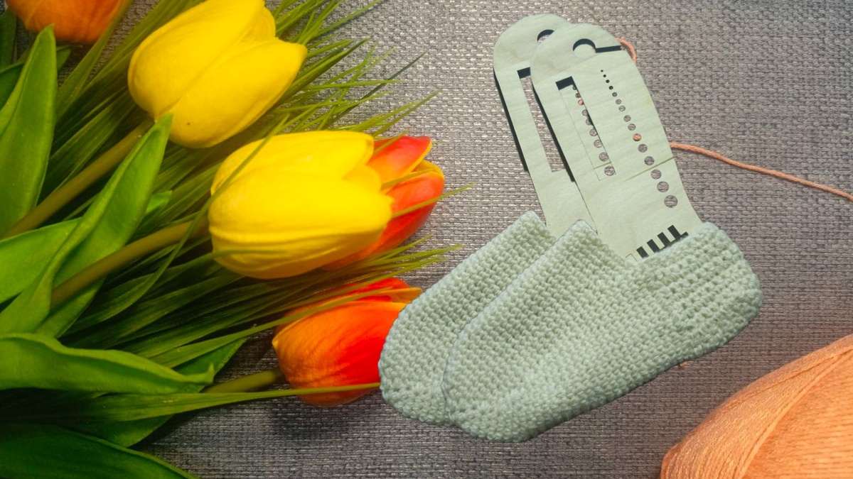 Пряжа у всех разная. Потому начну с незамысловатых расчётов. Представим что вяжем носок крючком. Какая мерка нам нужна для набора? Вот эта: Например, для вязания носка: набираем определённое количество петель и вяжем резинку. Затем вяжем до пятки. Дойдя до пятки мы делим связанное пополам и вяжем пятку. Вот это количество петель нам и нужно - половинка. Какое это будет количество петель - зависит от пряжи и нашей техники вязания ( плотности). Крючок №3.5. Буду вязать столбиками без накида. Давайте наберём цепочку из воздушных петель. Теми нитками, какими планируем вязать следки. У меня вот такие нитки: Я буду вязать на свой 37 размер и у меня по голени получилось - 40 воздушных петель. Значит для вязания следка мне нужно 20 петель. Набираю 20 воздушных петель и вяжу высоту пятки. Поделила визуально на 3 части. 7+6+7. Таким образом надо соединить среднюю часть из шести петель с боковыми из семи петель. Старалась объяснить как можно понятнее. Но если есть вопросы, я отвечу. Вяжу дальше.