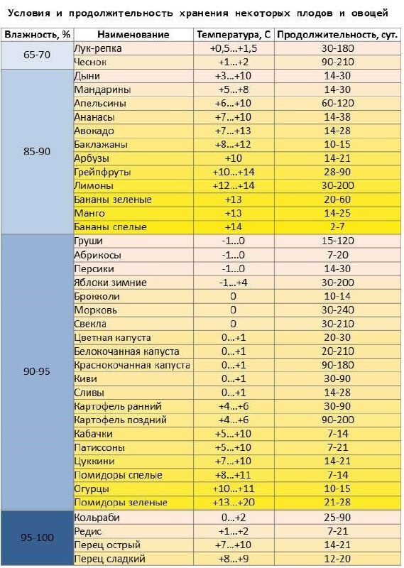 Условия хранения некоторых овощей и фруктов 🍎🍅🥬