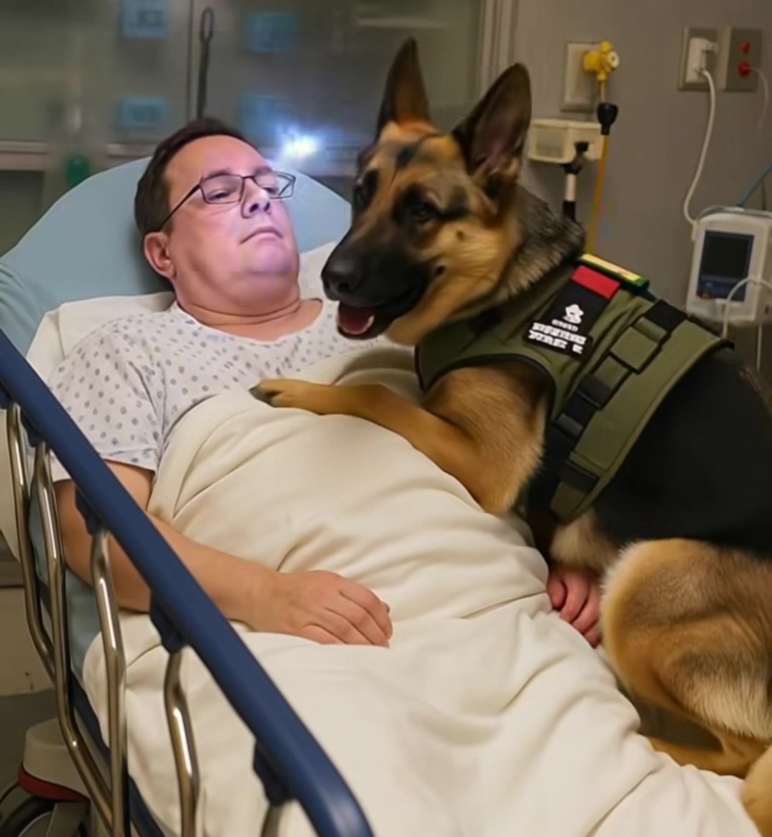 Но вдруг Лаки напрягся. Его уши встали торчком, ноздри раздулись. Он громко, резко залаял — не жалобно, а настойчиво, как будто предупреждал о чём-то важном. Медсестра Анна, стоявшая ближе всех, инстинктивно отступила, но Лаки не дал ей шанса. С неожиданной для старой собаки прытью он прыгнул на кровать, прямо к Анне, и начал лизать её руку, а потом — лицо. Его хвост вилял как сумасшедший, лапы топтались по одеялу.