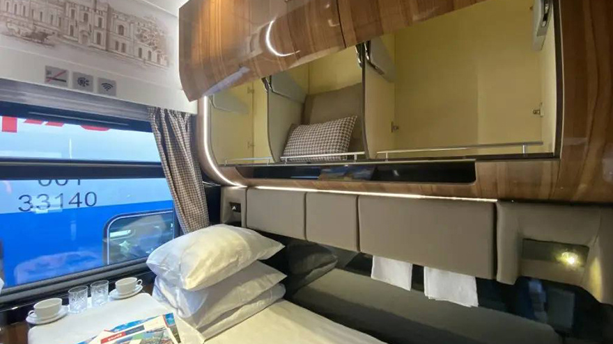 Модернизированные вагоны СВ с горизонтальным расположением мест, которые холдингом «РЖД» были продемонстрированы в августе текущего года на «PRO//Движении. ЭКСПО» в Санкт-Петербурге, уже начали курсировать на сети российских железных дорог. Об этом сообщает официальный сайт РЖД. Сегодня увидеть их можно в некоторых составах поездов № 19/20 «Тихий Дон» Ростов-на-Дону — Москва и № 11/12 Анапа — Москва. В ближайшее время такие вагоны появятся уже во всех составах этих поездов. В вагоне — восемь купе, в каждом из них есть: — возможность настройки освещения; — вместительные закрытые полки для ручной клади; — специальные места для верхней одежды; — мультимедийные экраны с опцией выбора контента; — индивидуальные светильники, розетки и USB-разъемы; — кнопка вызова проводника, а также другие удобства. Длина спальных мест увеличена на 16 см по сравнению со стандартными и составляет 2 м. Для комфорта пассажиров вагон оборудован системой климат-контроля и экологически чистыми санитарными комнатам