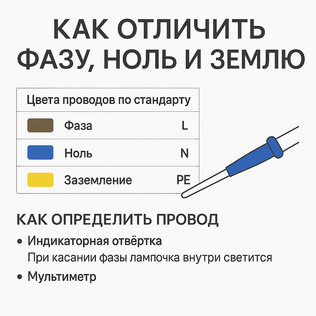 ⚠️ В старых домах цвета могут быть перепутаны — лучше проверять тестером!