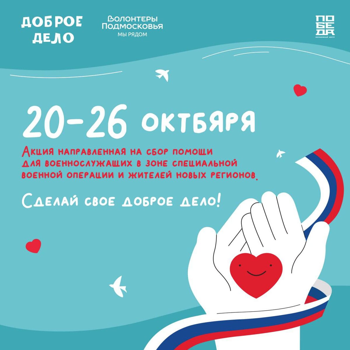 💪В Домодедово объявлен единый сбор гуманитарной помощи для военнослужащих в зоне СВО и жителей новых регионов. Акцию организуют «Волонтёры Подмосковья» с 20 по 26 октября, в преддверии Дня народного единства. Присоединиться может каждый! Пункты приёма открыты с 10:00 до 18:00 по адресам: 📍МКЦ «Победа» г. Домодедово, пл. 30-летия Победы, дом 2. 📍Молодёжное пространство «4К» г. Домодедово, ул. Овражная, дом 1, корпус 2. 📍Молодёжный центр «Интеграл» г. Домодедово, с. Ям, ул. Школьная, дом 14. 📍Центр военно-патриотического воспитания г. Домодедово, ул. Текстильщиков 1/1 Список необходимых вещей – в карточках к публикации. Сила Домодедово и России – в единстве и взаимопомощи. И вклад каждого из нас – это необходимая поддержка тех, кто нуждается в тепле и заботе, стоит на страже нашей безопасности. #ДоброеДело #МыРядом #ВолонтерыПодмосковья 📱 Евгения Хрусталева | Глава Домодедово