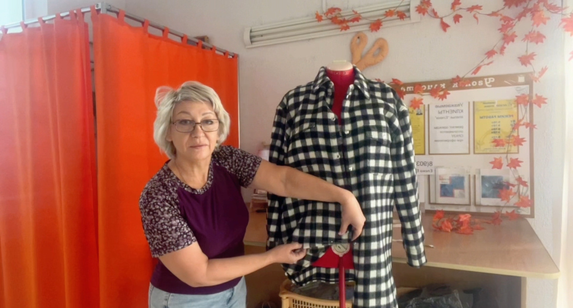 В модный бомбер Идея преображения Клиентка хочет превратить тёплую рубашку в модный бомбер. Показана длина, до которой можно укоротить рубашку для обработки манжета на резинке. Варианты карманов предложены два варианта карманов: в боковом шве или накладной по полочке. Размещение резинки Резинка будет начинаться с середины полочки и по спинке, вставлена в два ряда для аккуратности и удобства. Подготовка к финальному результату Отрезается низ рубашки с припуском для манжета. Делается оверлочная строчка по низу. Отпоролись шлёвки, пояс больше не нужен. Финальный результат Получился красивый бомбер с действующей кнопкой. По переду резинки нет, она начинается от середины. По спинке резинка в два ряда, хороший объём. Утеплённая рубашка, поношенная год-два, может быть превращена в красивый бомбер. Бомбер прослужит ещё не один год и будет радовать хозяйку теплом и уютом! #ремонт_одежды