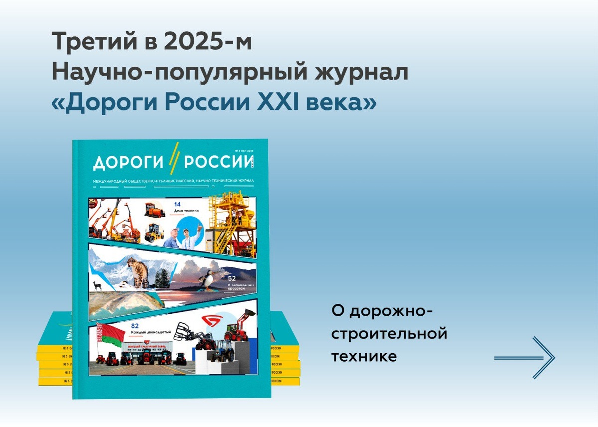 Читайте третий выпуск журнала «Дороги России XXI века»😎 Главная тема октябрьского номера — отечественное оборудование, с помощью которого дорожники меняют трассы страны. О передовых решениях, испытанных в реальных условиях, и людях, воплощающих их в жизнь, рассказали на страницах журнала, в котором пробежали по следам прошедшей в Москве 25-й выставки CTT Expo 2025, а также поделились двумя статьями от отечественных производителей. О состоянии рынка дорожно-строительной техники и особенностях конкуренции с китайскими машиностроителями нам подробно рассказал заместитель директора Ассоциации «Росспецмаш» Вячеслав Пронин. Любители истории также почерпнут много нового в материалах про строительство трассы от Куйбышева (ныне — Самара) до Челябинска, которая сейчас входит в состав М-5 «Урал», про раскопки на обходе Дербента и Усинский тракт — участок современной дороги Р-257 «Чуйский тракт», ранее носившей другое название — «Дорога дружбы» трёх народов: русских, хакасов и тувинцев. Кром