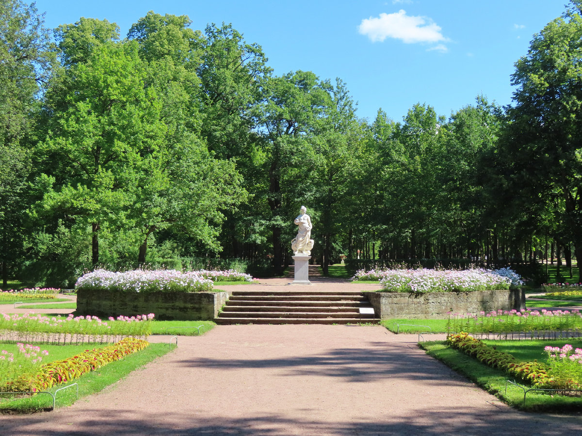 Большие Круги расположены в Придворцовом районе парка, на северной стороне Тройной Липовой аллеи, напротив Вольера. Этот участок парка устроен по проекту Винченцо Бренны в 1799 году. Большие Круги – это две невысокие круглые каменные террасы, украшенные цветниками и окружённые круглыми полянами. В центре террас стоят аллегорические скульптуры «Мир» и «Правосудие». Их автор – итальянский скульптор Пьетро Баратта, живший и работавший в знаменитой Карраре, где находится известное на весь мир месторождение белого мрамора, и где возникла блестящая школа скульпторов. Кельтское слово «каррара» означает «каменоломни». Русское слово «карьер» произошло от «каррары». «Мир» и «Правосудие» созданы Бараттой около 1720 года, по приказу Петра I приобретены у скульптора и привезены в Россию. Первоначально скульптуры находились в Летнем Саду, затем переехали в Царское Село, а в 1799 году по приказу Павла I были установлены в Павловске. Аллегорическая статуя изображает мир в образе молодой женщины, у ног